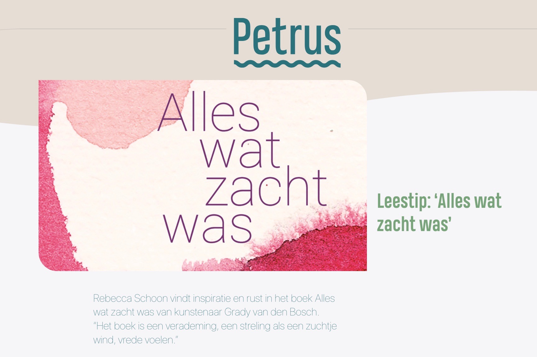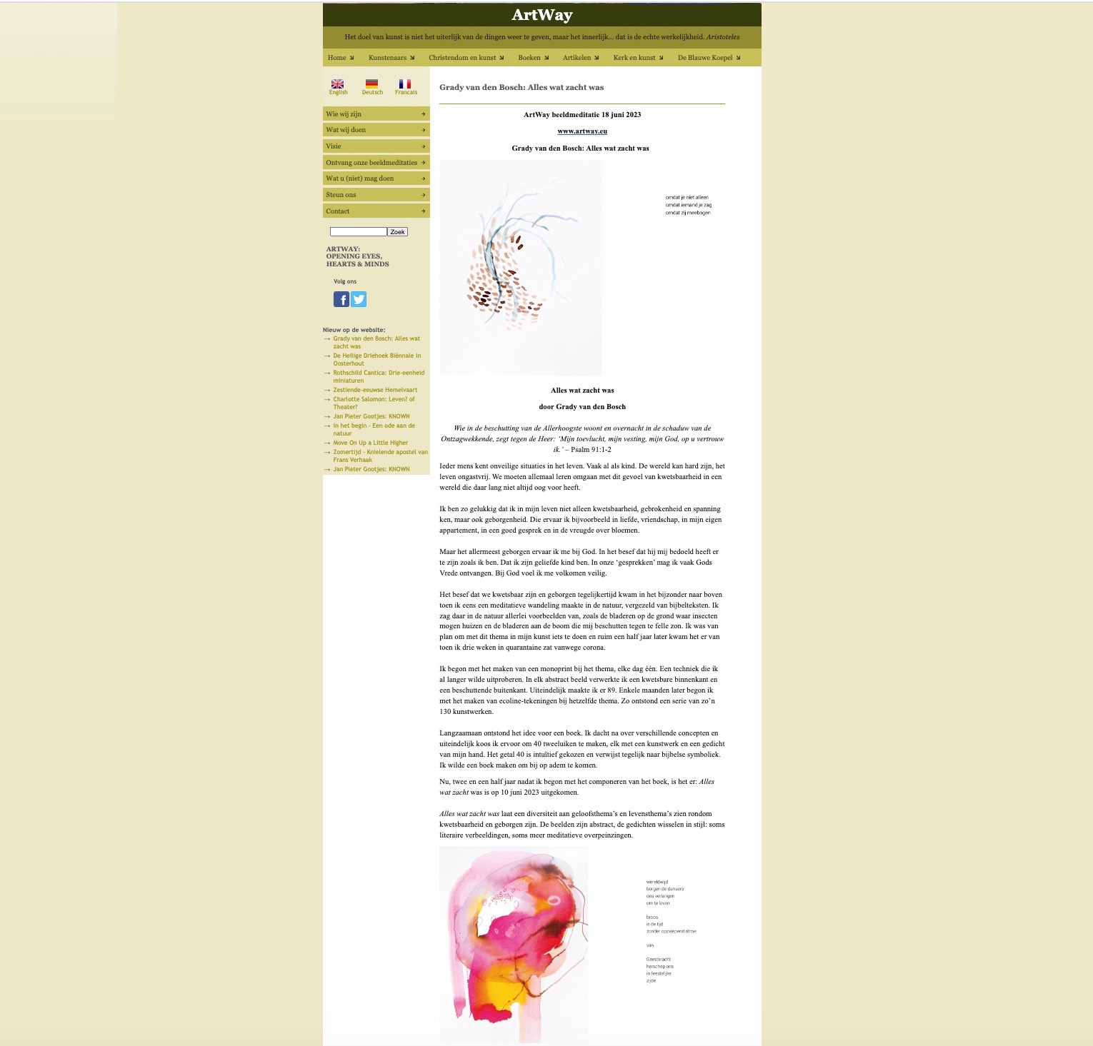 In 2020 werd een selectie van de kunstwerken die in Alles wat zacht was terecht zijn gekomen, geselecteerd voor de Longlist van de expositie NIEUWE AARDE. Dit was een samenwerking van het Bijbels Museum, The Turn Club en de Westerkerk in Amsterdam.