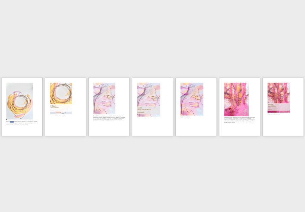 De pagina is ingedeeld in hoofdstukjes. Zoals de aanleiding en de start, het uitbouwen en nieuwe inspiratie, de ordening en verdieping, het afwerken en insturen.